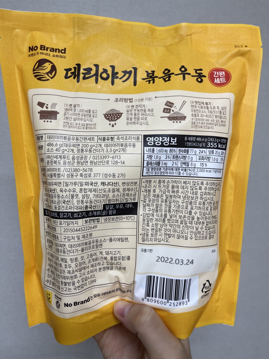 그래서 준비했다! 노브랜드가 야심 차게 발매한 데리야끼 볶음우동~~~! 아니 근데 이름이 특이하네... 보통 야끼우동이라 하지 않남... 어쨌든 데리야끼 볶음우동입니다.