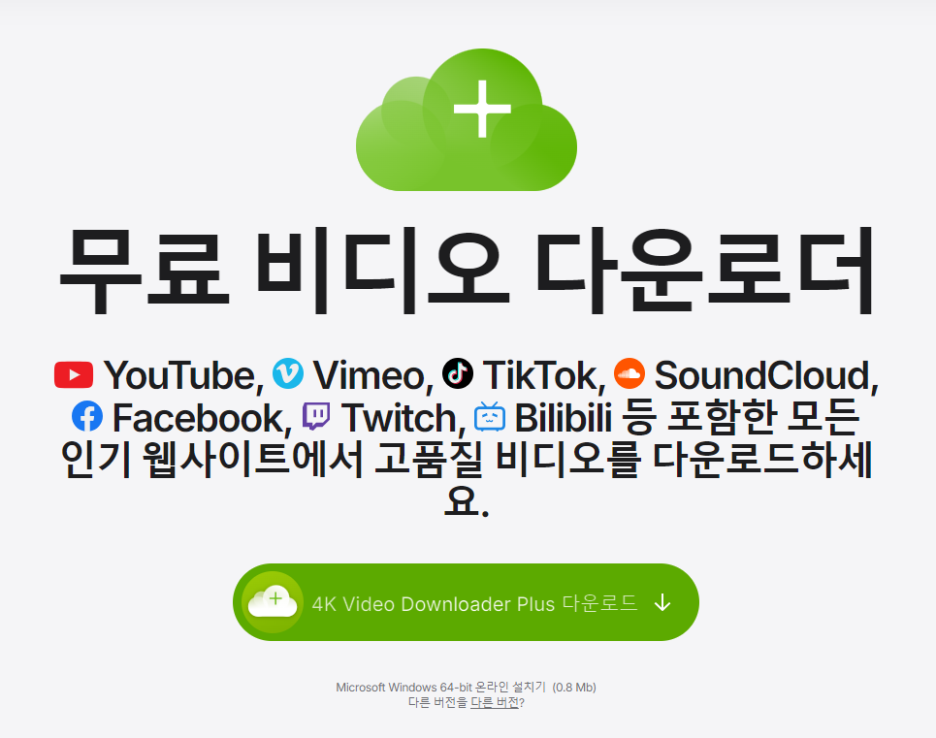 4K Video Downloader이 좋은 이유는 유튜브를 비롯해 다양한 플랫폼의 동영상을 저장할 수 있습니다. 특히 많은 사람들이 이용하는 유튜브, 틱톡, 트위치 등등... 사실상 인터넷에 올라온 동영상은 모두 저장할 수 있다고 봐야겠지요.