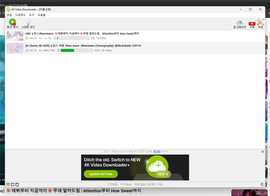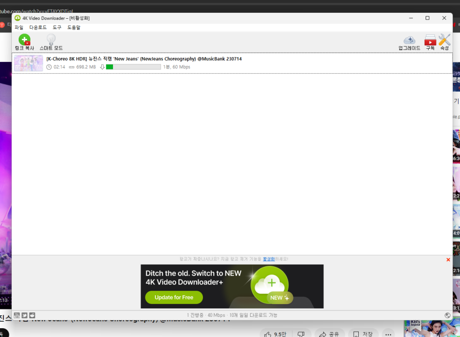 그리고 4K Video Downloader 프로그램에서 링크 복사를 누르시면 역시 자동으로 다운로드 됩니다. 비리비리 동영상도 역시 빠른 속도로 다운로드할 수 있어요.