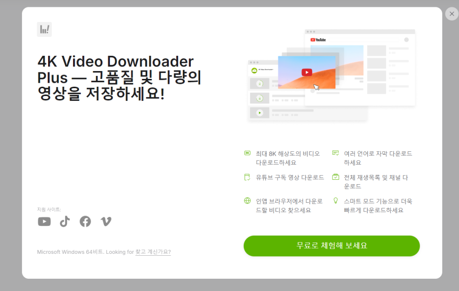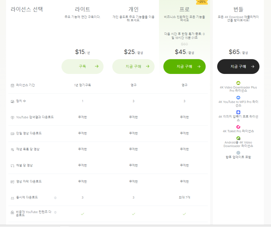 4K Video Downloader은 기본적으로 무료로 서비스됩니다. 그러나 더 많은 기능을 원하신다면 유료로 구매하실 수 있습니다.