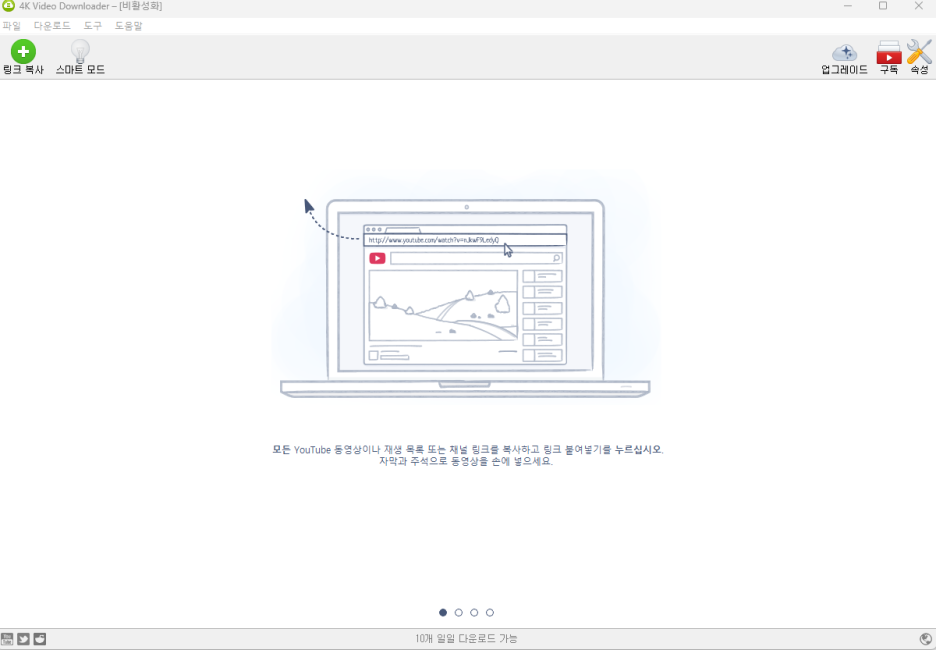 4K Video Downloader 프로그램을 구동하시면 이런 화면을 만나보실 수 있는데요.