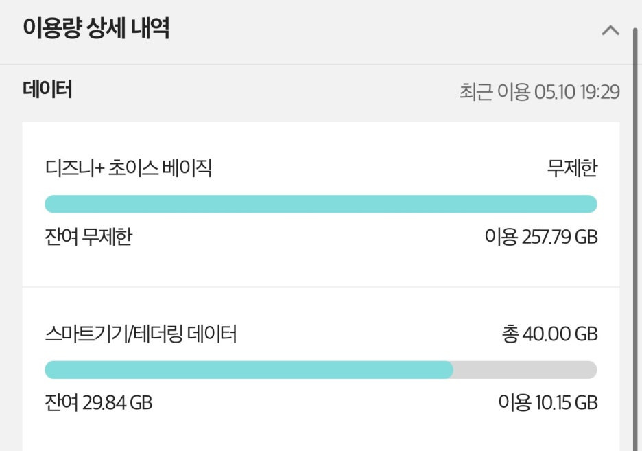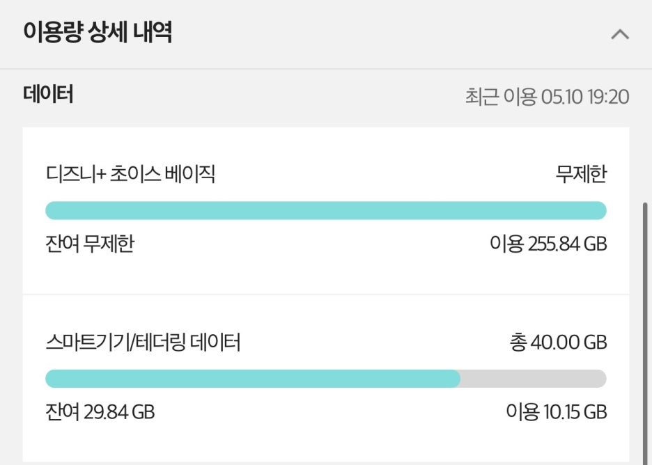 10분에 2기가면... 1시간에 12기가... 4시간이면 48기가... 겨우 40기가로 한 달을 쓰라고...? 에겡... 너무 짜다... 이러니까 핫스팟 무제한 쓸 수 밖에 없겠쥬?