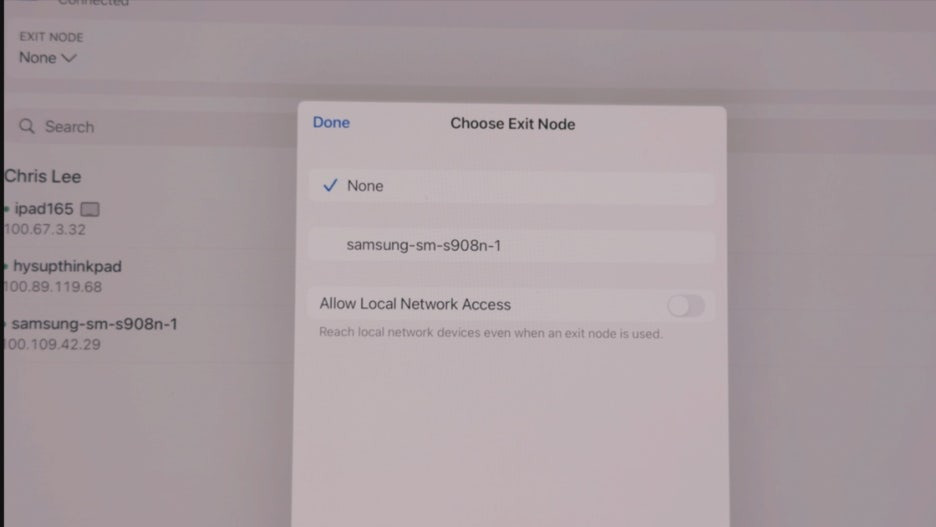 아이패드도 역시 Exit node를 눌러 갤럭시를 선택합니다.