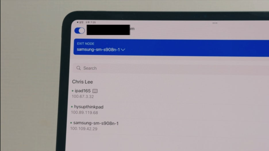 갤럭시에 잘 연결되었습니다. 아이패드 역시 Tailscale 어플에서 갤럭시를 고르고 핫스팟을 잡아주셔야 테더링 데이터를 사용하지 않고 일반 데이터를 사용합니다.