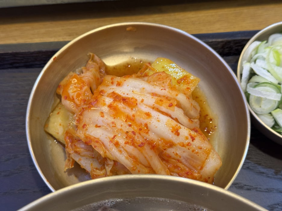 밑반찬으로 나오는 김치 맛있어요.