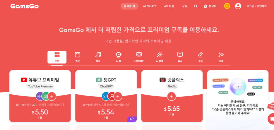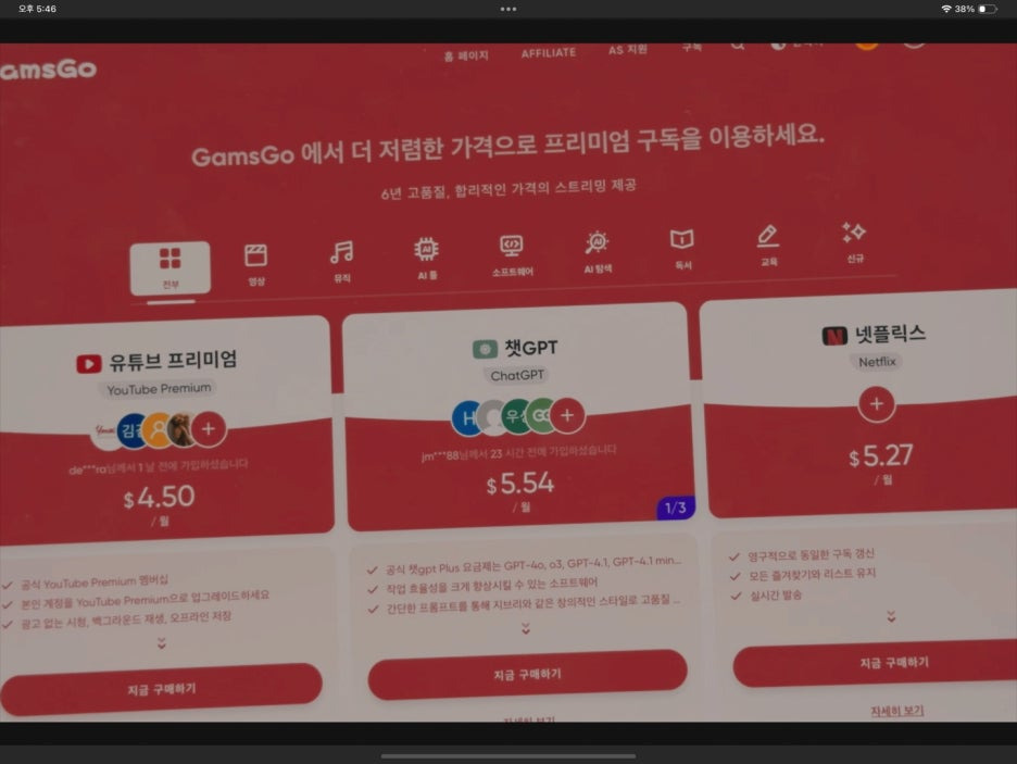 그런데! 구독을 남들과 공유할 수 있는 플랫폼이 있다면 믿으시겠습니까? 바로 겜스고입니다.