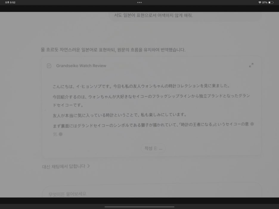 저는 평소 챗지피티로 번역 기능을 자주 이용하는데요. 확실히 플러스로 다양한 AI 모델을 이용해보니 한층 더 수월한 번역이 가능했습니다.
