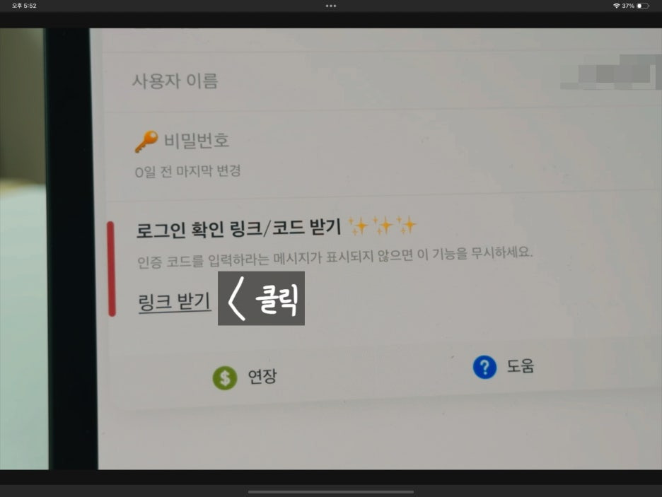 맨 밑에 '링크 받기'라는 문구가 보이실 겁니다. 이걸 누르시면 인증 코드를 바로 확인하실 수 있어요.
