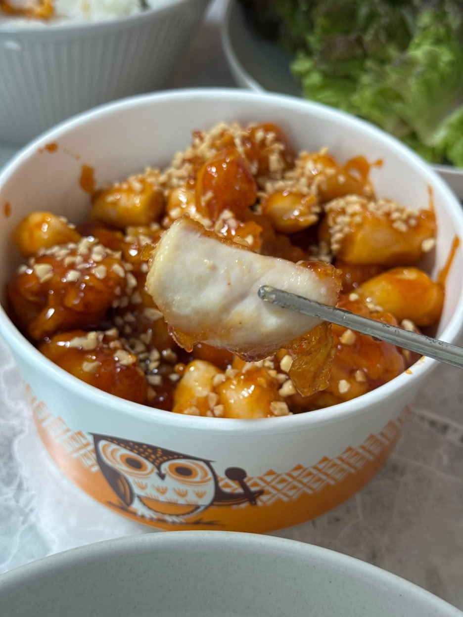 바삭바삭한 닭강정에 쫄깃한 떡 그리고 고소한 땅콩 가루까지... 그야말로 삼박자가 한데 어우러져 최고의 맛을 선사합니다. 밥이랑 먹어도 맛있고, 맥주랑 먹어도 맛있고... 그냥 먹어도 맛있고... 최고의 음식이야!!!