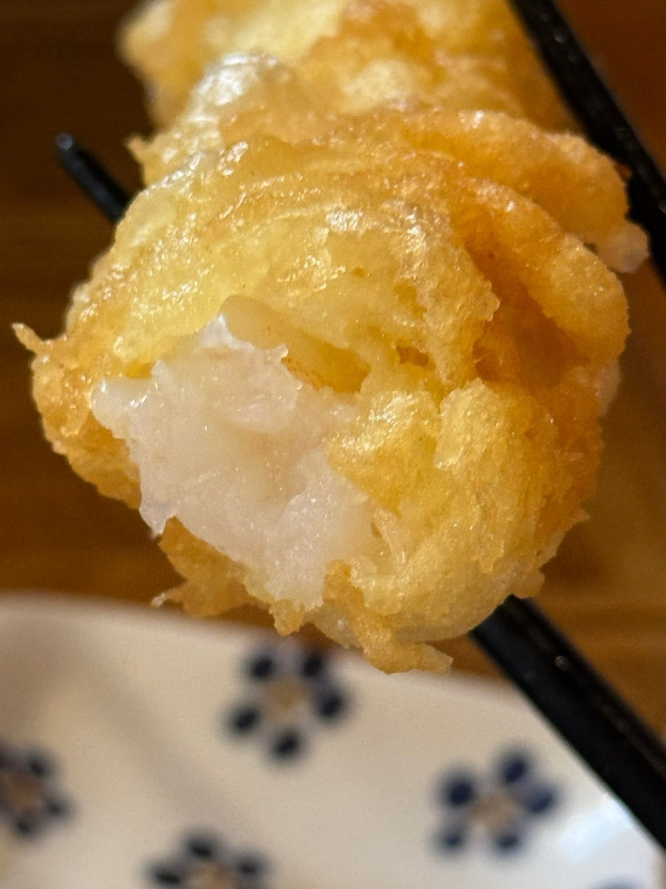 새우튀김 크기도 적당히 큰 게 좋습니다. 튀김도 아주 바삭바삭해서 제 취향에 너무나도 잘 맞았구요. 이것도 한 입 먹자마자 바로 하나 더 주문했습니다.