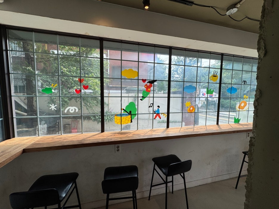 테이블이 많은데 넓게 떨어져 있어서 참 좋죠? 큰 유리창도 곳곳에 달려 있어 채광도 넘넘 좋았어요.