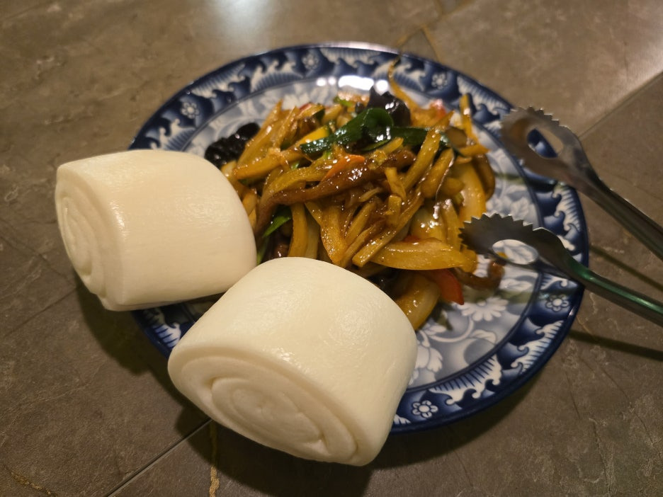 원래 잡채를 너무 좋아하는데 매콤하게 볶아지니 넘 맛있네요... 꽃빵이랑은 또 왜 이리 잘 어울려... 양은 딱 적당해. 적지도 많지도 않고 딱 적당해.