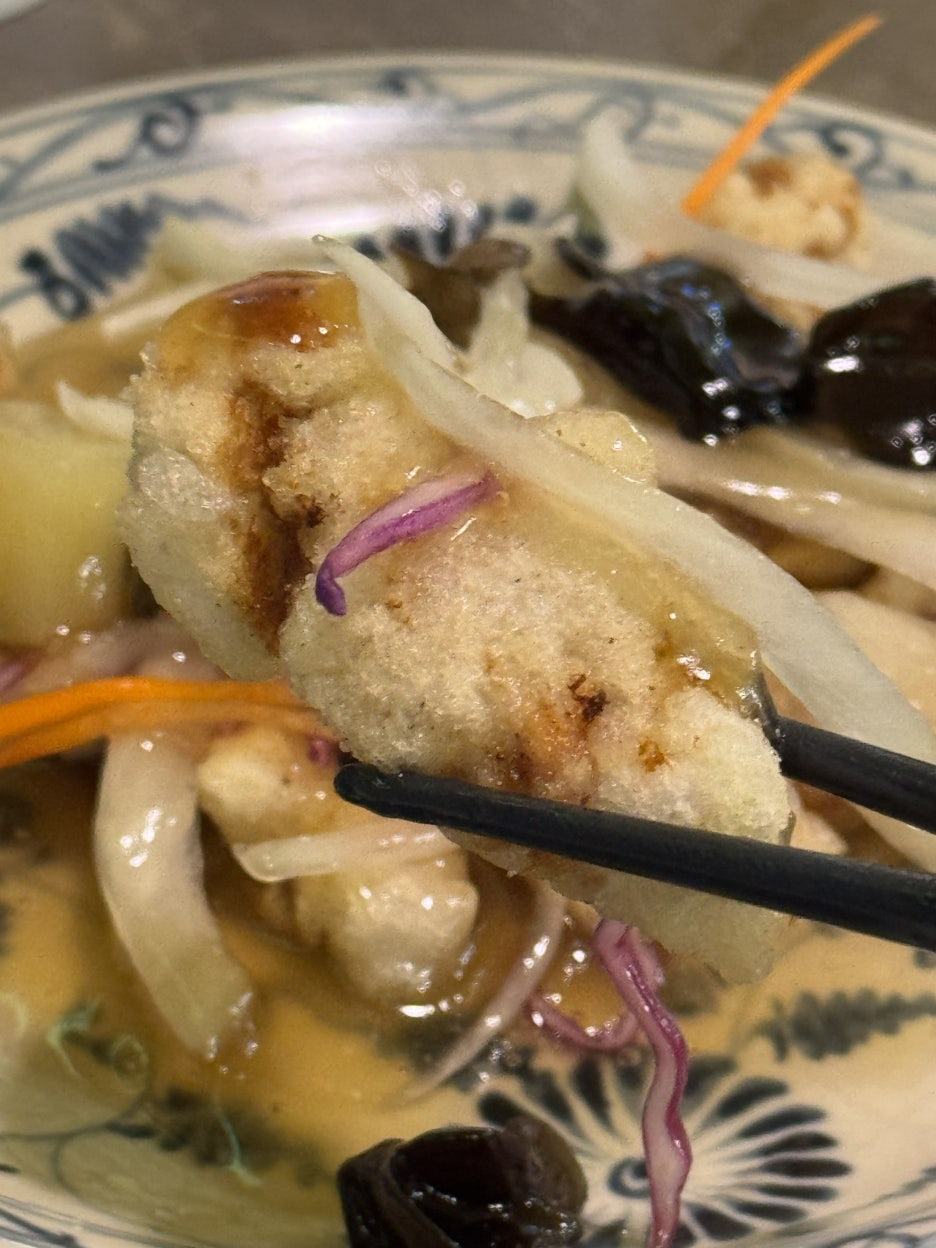 보성녹돈 탕수육. 보성하면 녹차, 녹차하면 돼지, 그 둘이 만나 보성녹돈! 근데 그걸로 탕수육을 만들었으니 어찌 맛이 없을 수 있겠습니까.