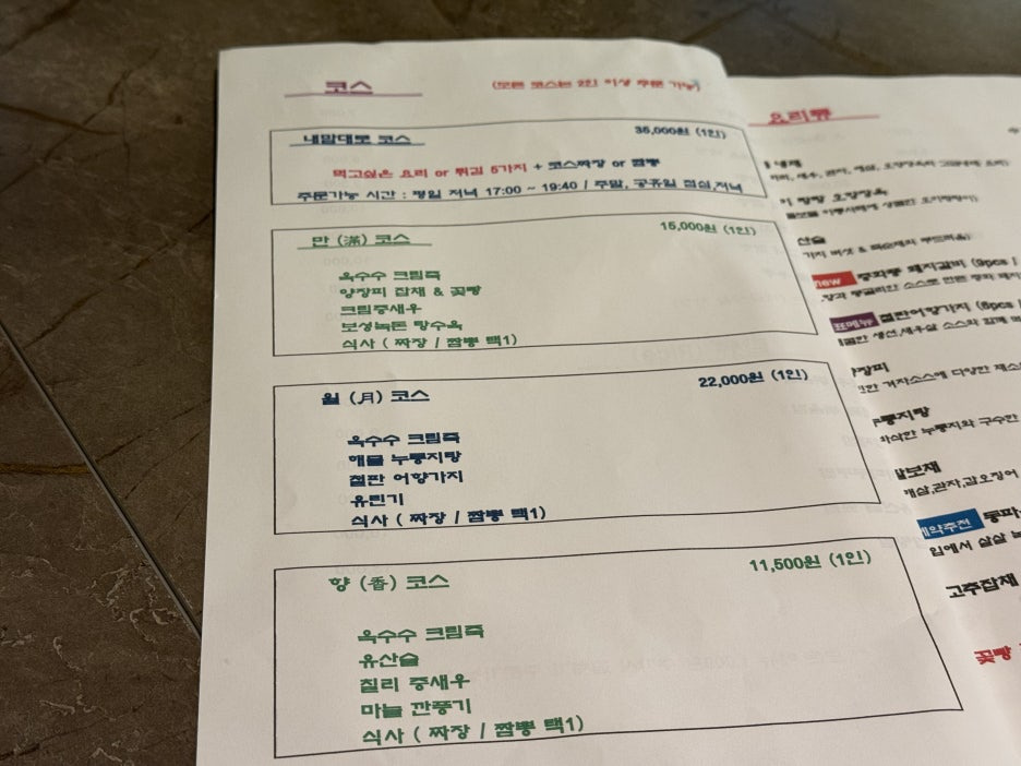 만월향의 시그니처는 바로 다양한 코스 요리 아닐까 싶은데요. 내 맘대로 코스 35,000원부터 실속 있는 11,500원까지! 정말 괜찮은 가격에 다양한 요리를 맛볼 수 있는 게 너무 맘에 들어요.